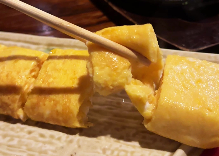 そして、もうひとつの名物「だし巻き卵」。ふわっと軽やかなのに、しっかりと形を保った美しい焼き上がり。優しい甘みとほんのり香る出汁のバランスが絶妙で、箸を運ぶたびにほっとした気持ちに。ケチャップを添えて食べるスタイルが、どこか懐かしく、昔の食卓を思い出させてくれるようです。まるで、お母さんが作ってくれたような温かみのある一皿に、心までほぐれていきます。